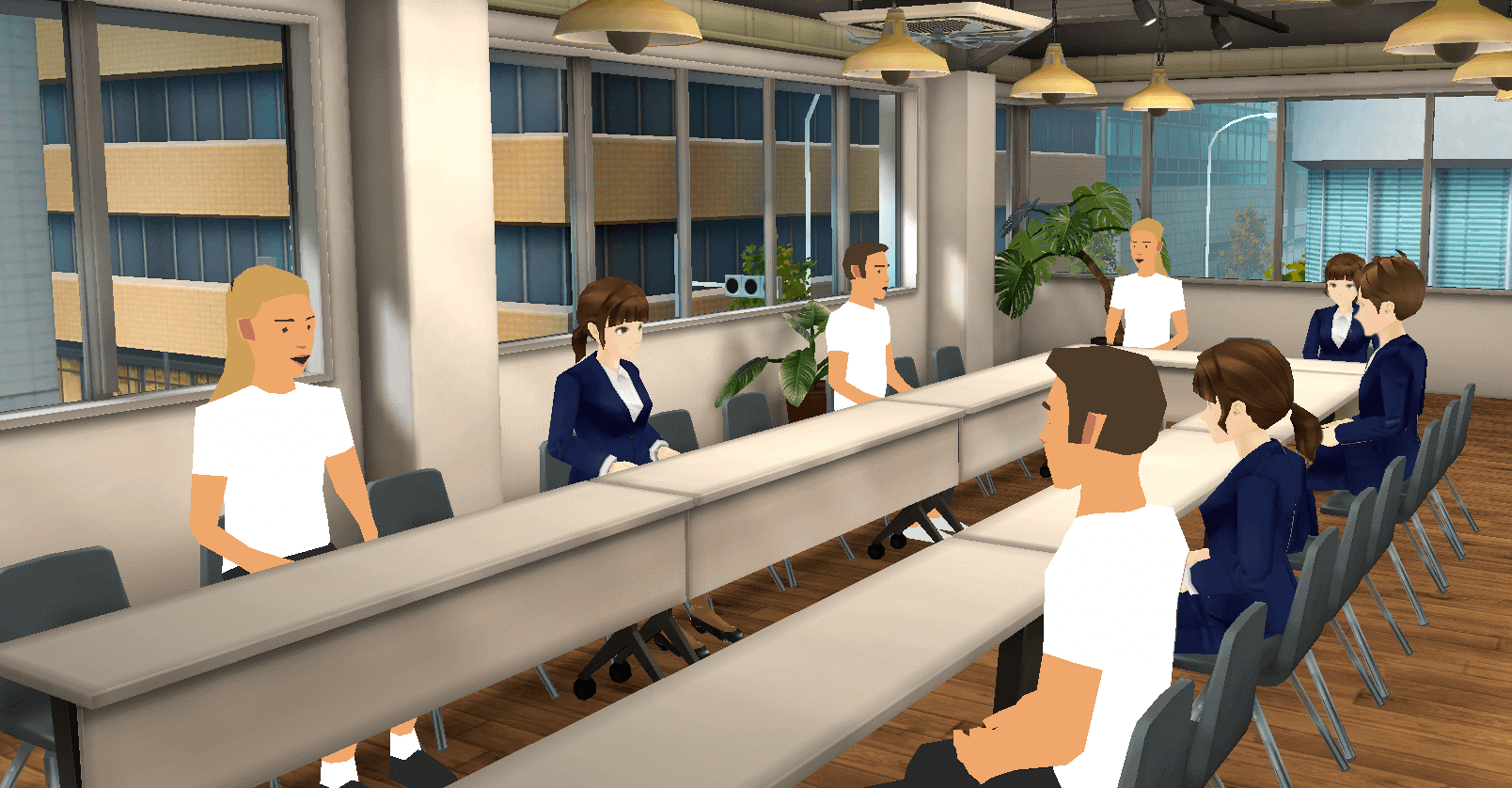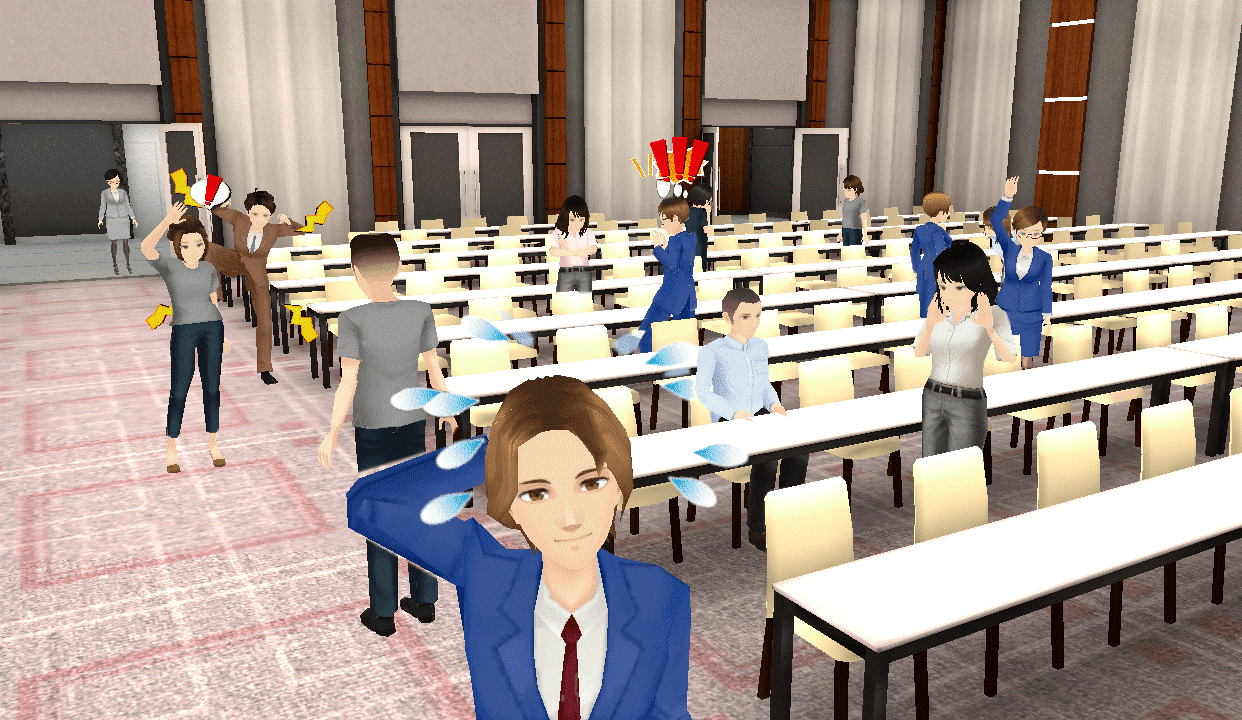 「1日で第一生命を丸わかり」をテーマに5,000人が収容出来るセミナールームや座談会ルームを複数準備し、分野・職種別の講座や役員・人事部長によるスペシャル講演会、座談会などコンテンツを豊富に用意していますので生命保険業界の動向や第一生命グループの取り組みを深く研究出来ます。第一生命の社員と内定者はアバターを介してコミュニケーション行う為、様々な人と気兼ねなくコミュニケーションをとる事が出来ます。また、本イベントの参加はネット環境さえあれば、お手持ちのスマートフォンやパソコンから(※1)どこからでも参加する事が可能で、コミュニケーション方法はXR CLOUDに搭載しているボイスチャット機能、テキストチャット機能で行う事が出来ます。またアバター自体に様々な動きをとらせる事が出来るエモート機能も標準搭載しています。