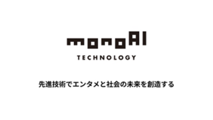 monoAI technology株式会社は「先進技術で、エンタメと社会の未来を創造する。」を理念とし、ゲームの技術をベースにエンターテインメントから仮想オフィス、メタバース展示会といったソリューションまで、幅広いコンテンツを提供しています。通信・AI・ゲームエンジンを駆使した時代の先端を行くサービスで、バーチャルとリアルのパフォーマンスを最適化し、社会に貢献します。