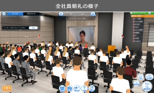 また、数百人を収容出来る大会議室をメタバース空間に設置することで、全社員が集まって毎朝朝礼を行うなど、リモートワークによるコミュニケーション不足の緩和に対する取り組みを行っています。