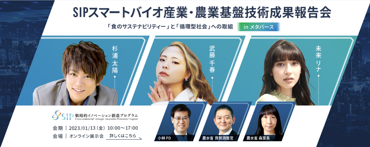 本イベントは、「食のサステナビリティ」と「循環型社会」をテーマとした、次世代バイオ産業・農業における最新の成果報告イベントです。