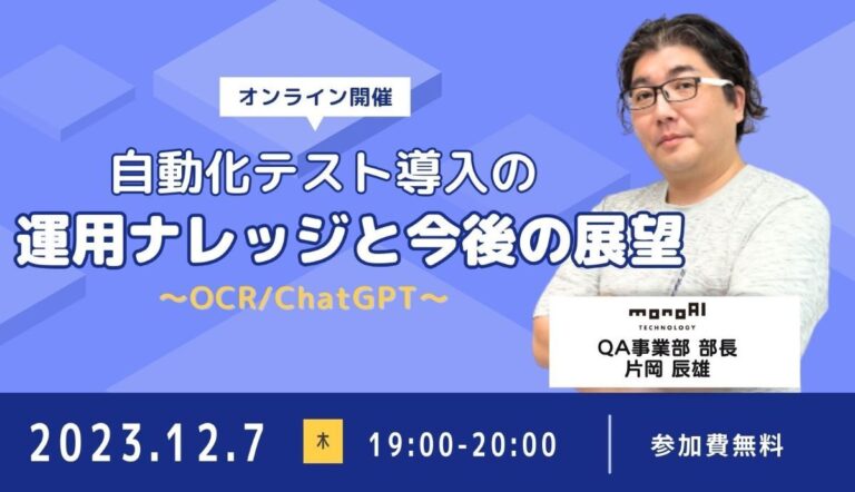 monoAI technologyは、2023年12月7日(木)に「自動化テスト導入の運用ナレッジとその後の展望」セミナーを開催いたします。