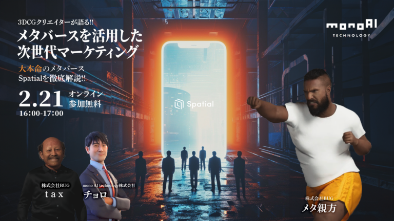 monoAI technologyは、2024年2月21日(水)に「メタバースを活用した次世代マーケティング 大本命のメタバース「Spatial」を徹底解説!」セミナーを開催いたします。