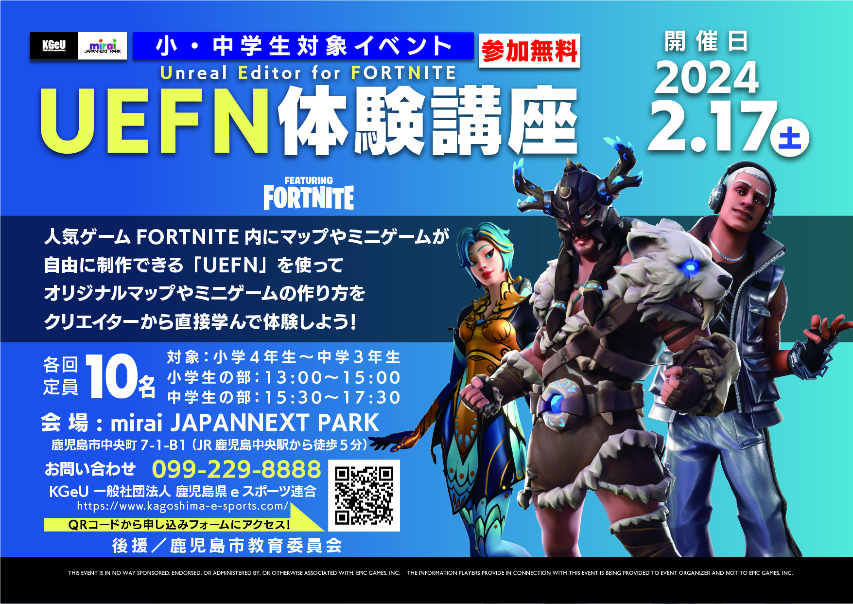 【イベント講演のお知らせ】 鹿児島県eスポーツ連合主催の「UEFN体験講座」にて、チョロ・金澤が講師として登壇